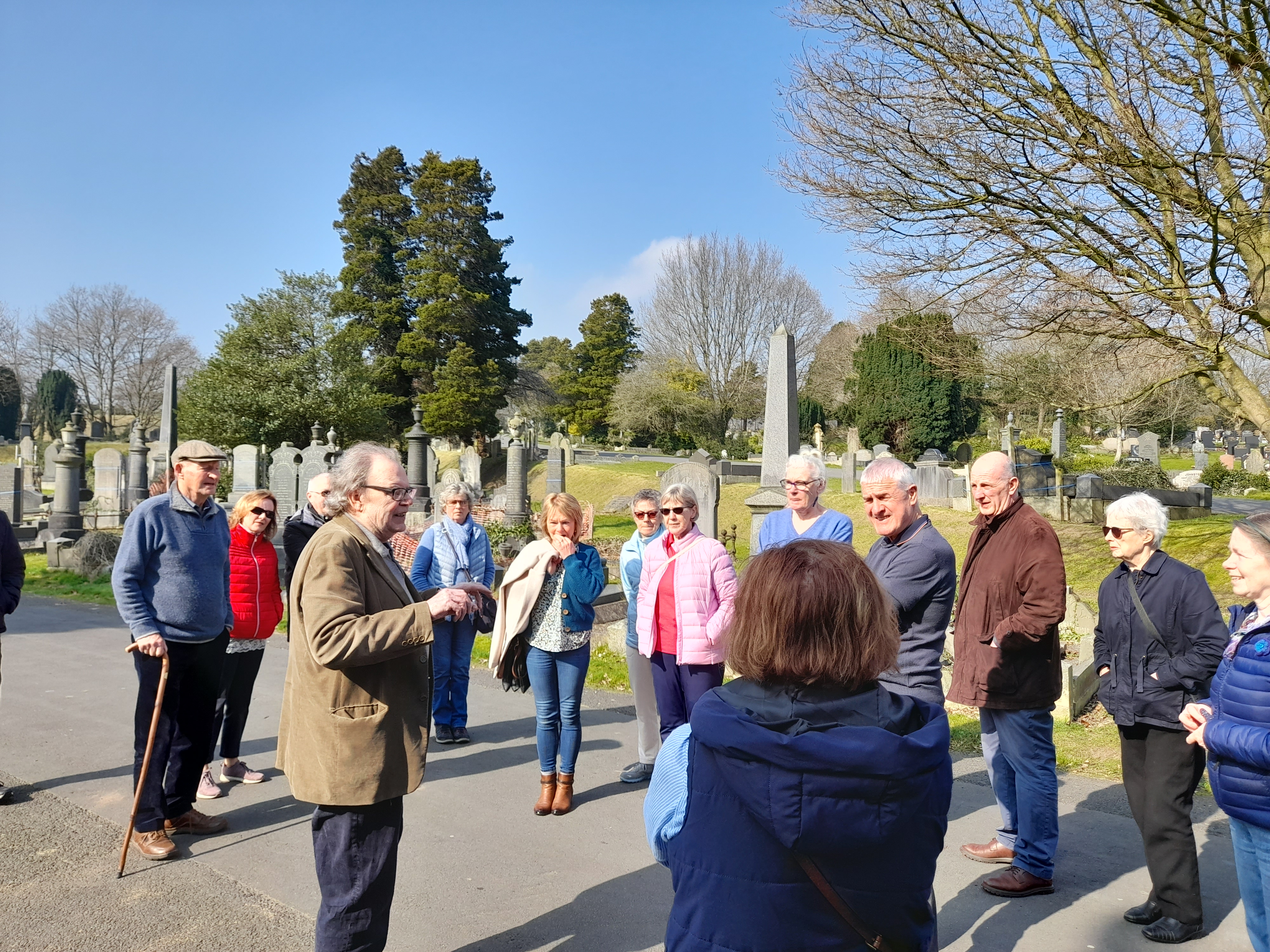 I was pleased to again take part in a tour of Belfast City Cemetery led by Tom Hartley. Tom is now the author of four books on the cemeteries of Belfast and I was pleased also to pick up a copy of his latest work, More Stories from the Belfast City Cemetery. This was his penultimate tour of the last series he would give as part of the Féile an Phobail and like all these tours there was a very large attendance.