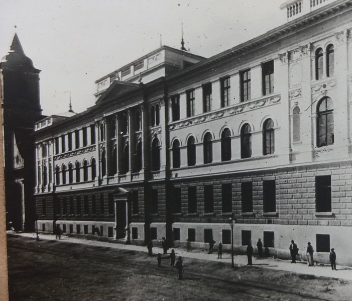 Recently I have published a couple of ‘then and now’ shots featuring Edwardian postcards and contemporary photographs on this blog. One featured a view of a street in Toxteth and one some of the churches in Banbridge. This is another ‘then and now’ view but, in this case, it is taken from a glass lantern slide of the Unitarian College building in Cluj/Kolozsvár.