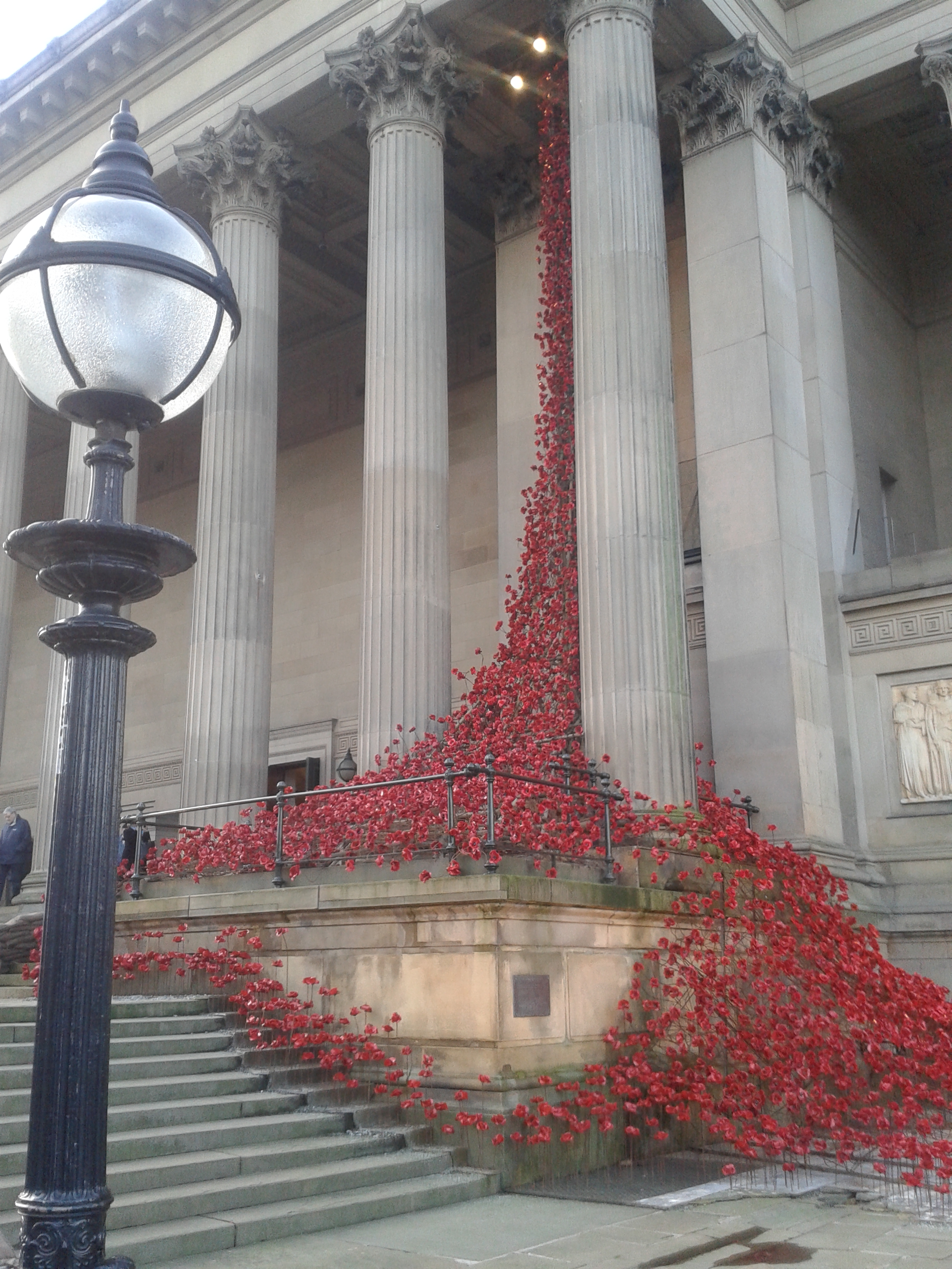 Several thousand poppies poured from a high vantage point in the Hall on to the ground below. As such a significant building St George’s Hall made a magnificent backdrop for the poppies and over 300,000 visitors are estimated to have travelled to see it in place.