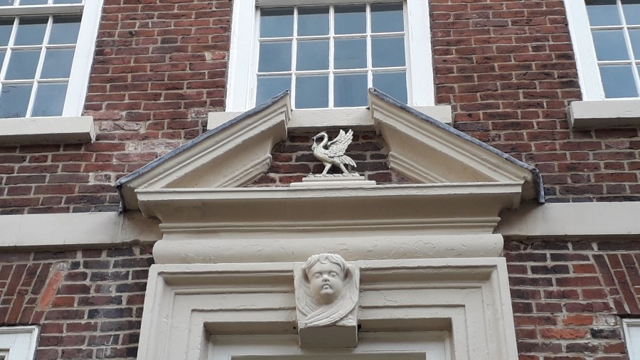 The Bluecoat building was badly damaged during the blitz of 1941 but was saved and has been restored a number of times over the last century. The Latin inscription across the front of the façade has been removed and restored at different times. It reads:
