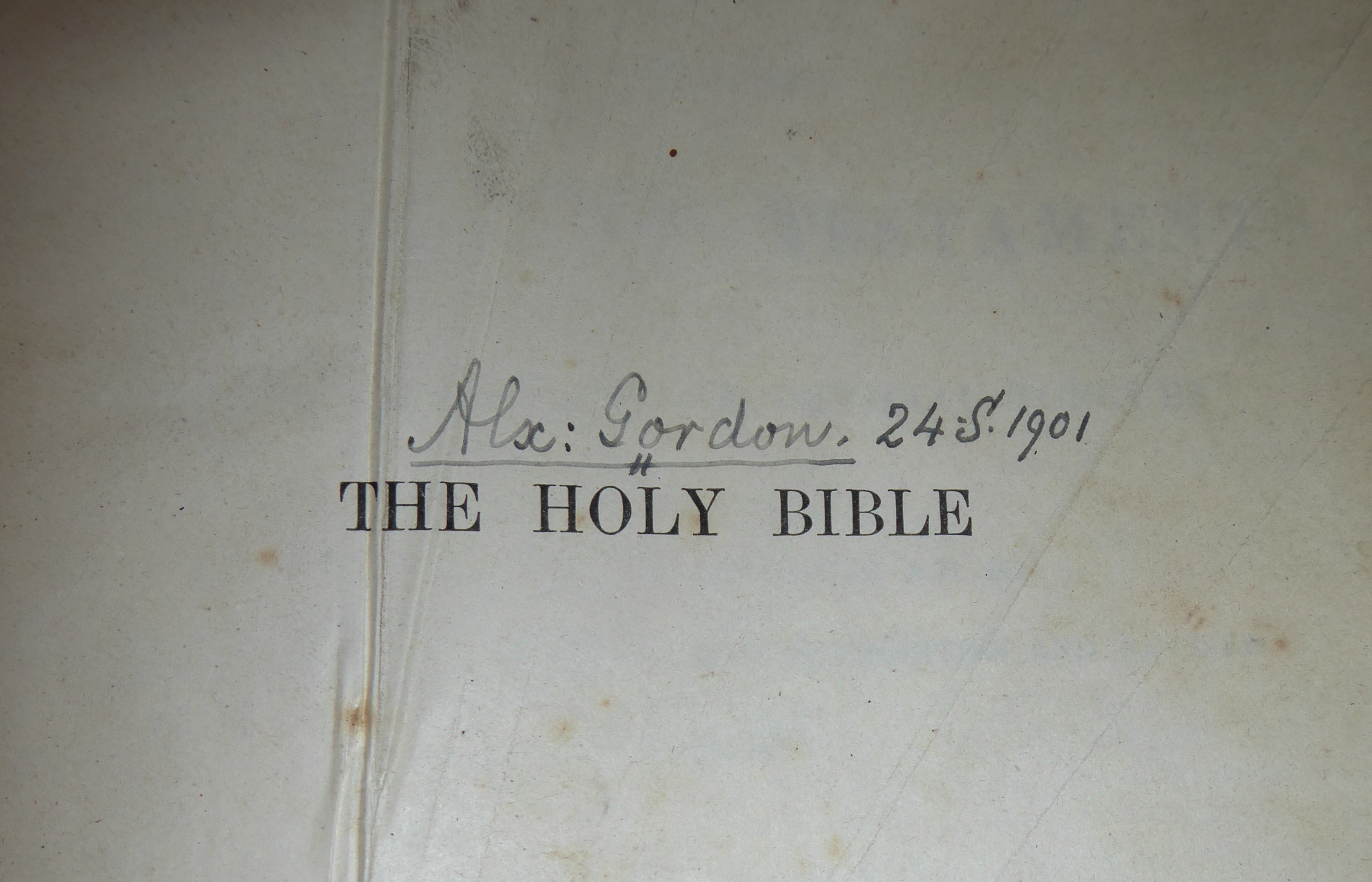 Gordon’s distinctive signature in a personal copy of his Bible (Revised Version)