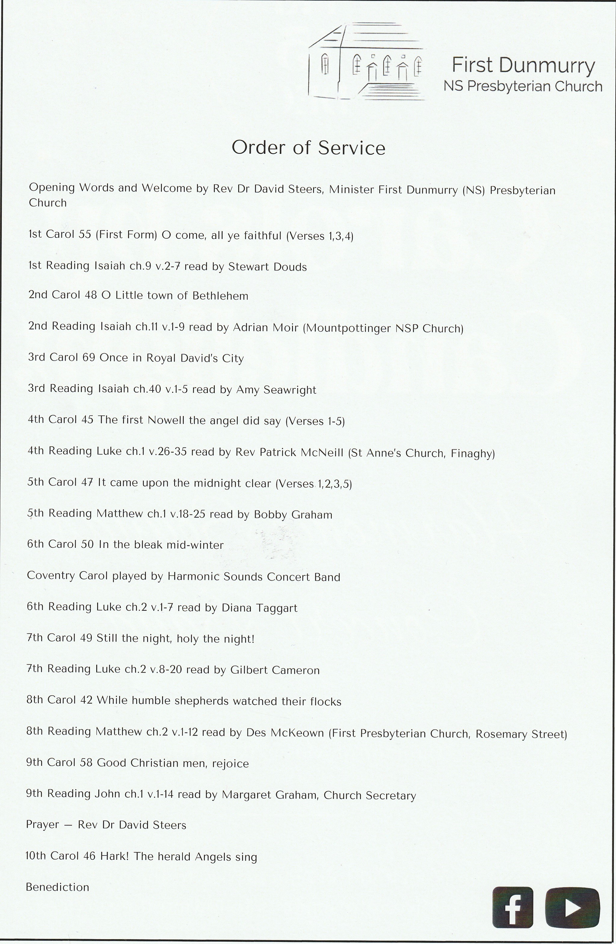 On Friday, 15th December we were delighted to welcome to Dunmurry Harmonic Sounds Concert Band under their Musical Director, Paul Hamilton to lead us in our service of Carols by Candlelight. The Church was beautifully decorated, there was a great attendance and readings were given by members and friends of the congregation.