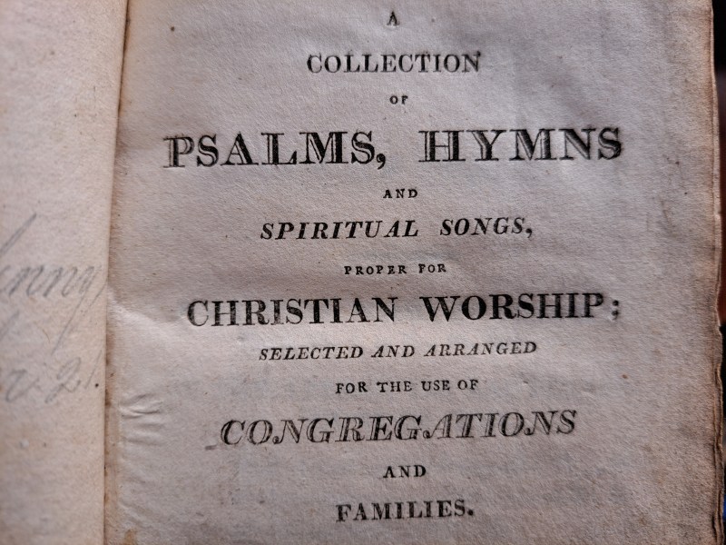 Following the establishment of the Remonstrant Synod of Ulster in 1830 Non-Subscribers moved towards the development of a hymnbook for all churches. This is Psalms, Paraphrases, and Hymns, for Christian Worship published in Belfast in 1841: