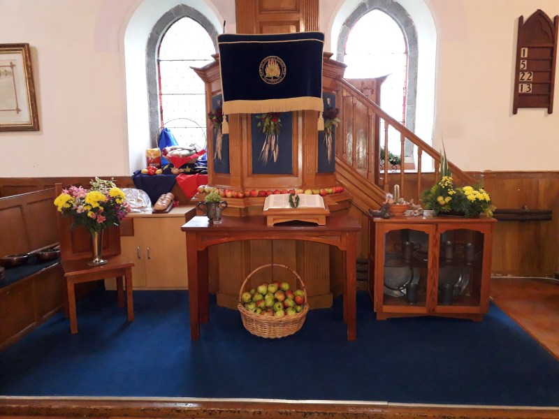 The First Presbyterian (Non-Subscribing) Church, Stream Street, Downpatrick held their annual Service of Harvest Thanksgiving on Sunday, 7th October. The Church was beautifully decorated for the occasion at which the congregation welcomed the visiting preacher, Rev Roger McKee from Newtownards and Greyabbey NSP Churches, and the visiting choir, the Lindsay Chorale.
