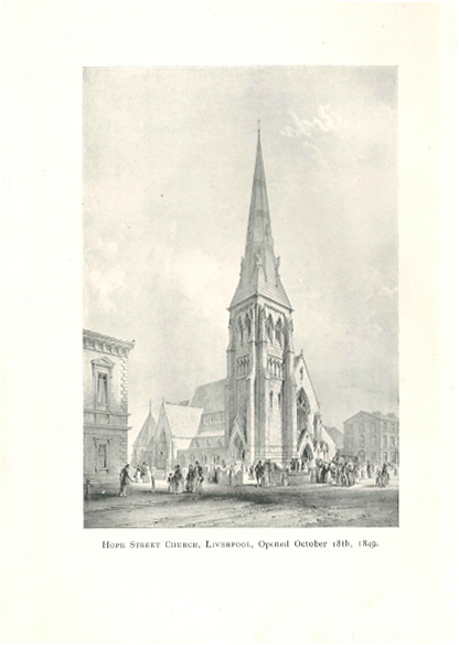 Hope Street had certainly known rather more glorious days. Built by James Martineau’s congregation to provide a place of worship that suited his style and popularity it was a thorough-going gothic construction that reflected his devotional approach. The classic image of it is this one: