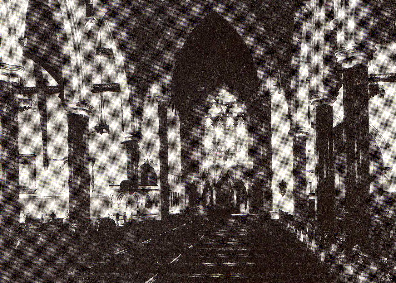 Nothing really remains of Hope Street Church today. Photographs of the interior are intriguing. This scan isn’t great but it shows the view looking towards the pulpit, the chancel and the font.